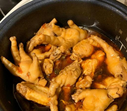 预处理:鸡爪剪去指甲,冷水下锅加料酒焯水去腥,捞出后过冷水备用。2. 腌制:葱姜切末与鸡爪混合,加入生抽、老抽、蚝油、料酒、花椒、干辣椒,搅拌均匀后腌制15分钟。3. 炖煮:电饭煲底刷油,铺上鸡爪,加入没过鸡爪的清水,放入八角、花椒,按下煮饭键。待跳至保温后,开盖搅拌均匀,再煮10-15分钟至汤汁浓稠,鸡爪软糯即可。4. 收汁:根据口味调整盐量,开盖收汁至汤汁浓稠,鸡爪表面光亮即可出锅。