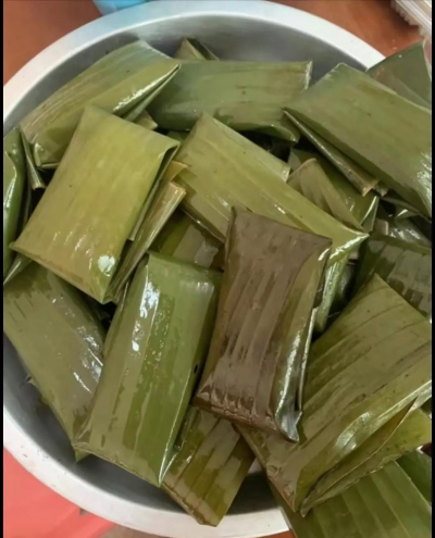 包制与蒸煮:将糯米泥包入粽叶,呈三角形或四角形,蒸15-20分钟。