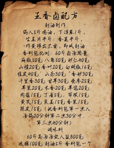 香料处理: - 草果/砂仁需拍裂去籽,避免发苦 - 香料包需预留1/3空间防止煮破 - 熬糖色需全程观察,避免糊锅 - 卤制时用中小火,确保肉质均匀入味 - 不同肉质(如三层肥瘦相间的五花肉)需调整卤制时间,避免过烂或未熟 - 浸泡卤水可延长入味时间,建议夜间制作次日食用 四、风味变体 台式风味