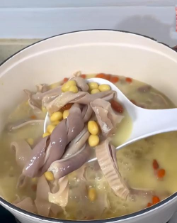 做法步骤:同样先把猪肚清洗干净切块。山药去皮切成段,莲子提前泡发一下。在锅里加水,放入猪肚、莲子和红枣,大火煮开后转小火炖一个小时左右。然后加入山药继续炖半个小时,最后放入枸杞,再煮几分钟,加盐调味就行。这道汤口感清甜,营养丰富,喝起来特别舒服。