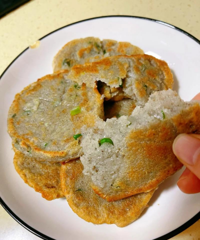 平底锅刷油,舀一勺面糊摊成小饼,两面煎至金黄即可。