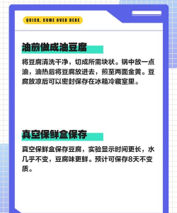 如果你是家庭主妇或经常买豆腐,建议每次购买适量,尽量当天或隔天吃完。如果需要长时间保存,可以选择冷冻或制作成豆腐干。