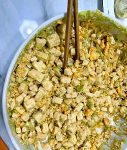 搭配建议:可以加入鸡蛋、肉末(如猪肉末)来丰富口感,做成“素肉豆腐水饺”。