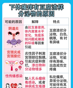 下体瘙痒伴有“豆腐渣”样分泌物,通常是阴道炎的一种典型表现,尤其是念珠菌性阴道炎(霉菌性阴道炎)。这种情况在女性中较为常见,尤其是在免疫力下降、使用抗生素、怀孕、糖尿病或卫生习惯不良的情况下更容易发生。
