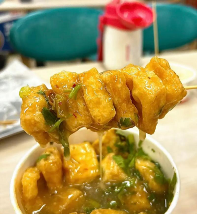 2. 炸豆腐:豆腐切块后裹上调好的酱汁,油炸至金黄捞出,控油后淋上剩余酱汁。