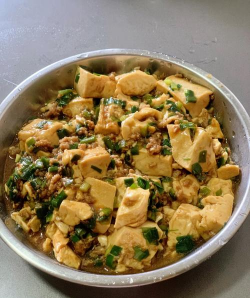豆腐预处理:将豆腐切2cm见方块,用厨房纸巾吸干水分,外裹淀粉(可选)。2. 肉末炒制:热锅凉油,爆香葱姜蒜末,加入肉末翻炒至变色,调入生抽、老抽、蚝油翻炒均匀。3. 组合浇淋:将炒好的肉末连汤汁淋在豆腐上,撒上葱花、蒜末,可加入蒸鱼豉油提鲜。4. 蒸制:水开后上锅蒸5-8分钟,至豆腐入味且表面微焦。5. 调味收汁:蒸后淋热油激发香味,根据口味调整盐量。