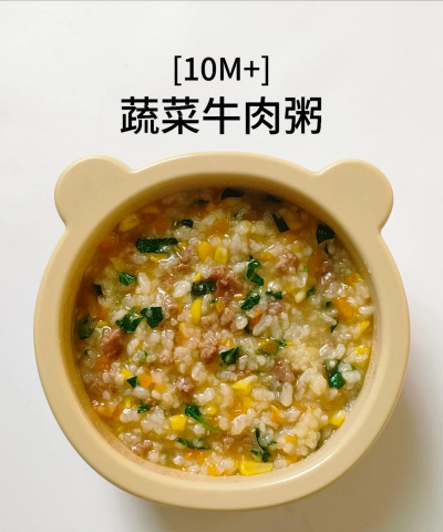 食材:白米粥一小碗,牛肉20克,洋葱20克,胡萝卜1小截,青菜3片,温开水适量。