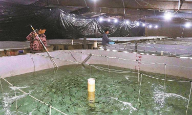 每天分上、下午两次投喂,上午占40%、下午60%。根据天气、水温及摄食情况调整投量,阴雨天减少投喂量。