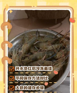 - 冰鲜虾煮熟后冷冻可保存3天。