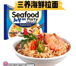三鲜海鲜拉面: 加入鱿鱼、虾仁、鱼丸,搭配甜不辣酱或沙茶酱; 蔬菜海鲜拉面