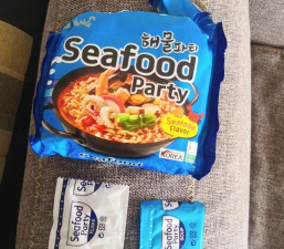 三鲜海鲜拉面: 加入鱿鱼、虾仁、鱼丸,搭配甜不辣酱或沙茶酱; 蔬菜海鲜拉面