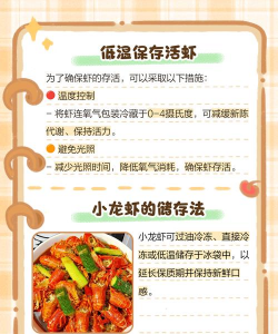 - 趁新鲜尽快冷冻,可保存1-3个月。冷冻前需用淡盐水浸泡虾体15分钟,减少腥味。