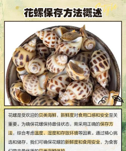 二、温度与盐度的综合管理短期保存: 将花螺放入与海水盐度相近的冷水中冷冻保存,可存活1-2天,需尽快食用。