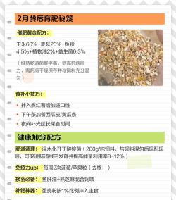 第一周建议全喂全价颗粒饲料,便于消化吸收。- 饲料需低温粉碎并充分混合,避免营养成分损失。
