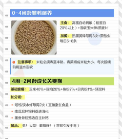 雏鸭饲料配方需根据日龄阶段调整营养成分,以满足其快速生长期对能量、蛋白质和营养素的需求。以下是综合多个权威来源的配方建议: