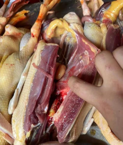 四、辨别方法(实用技巧)看皮肤颜色:黄皮(金黄色)多为饲料鸭,白皮多为散养土鸭。