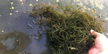 离子平衡失衡:正常池塘水环境中存在阴阳离子动态平衡,逢蜕壳高峰期,河蟹需要从水中吸收大量的钙质。钙质属于阳离子,阳离子的大量流失,相对阴离子就会增加,而阴离子带负电荷易吸附小分子的有机质及杂质黏附于水草上。