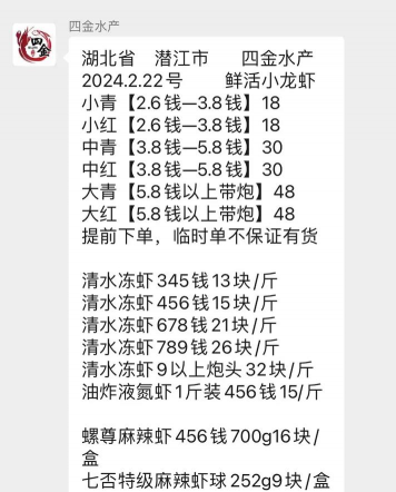 如果需要高品质的小龙虾,可以选择每斤70元的湖北虾和四川虾。