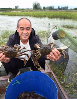 饲养管理大闸蟹的生长季节主要在夏季,此时应增加营养供给,促进快速生长,主要以植物性饲料为主,如小麦、玉米、南瓜等。秋季是大闸蟹的育肥期,应增加螺类、小鱼、河蚌等动物性饲料,以提高肉质和经济效益。