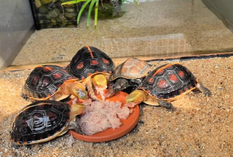 将团状饲料放置在饲养容器(如水族箱)的水陆交界处,利用湿度差吸引乌龟取食,减少饲料浪费。