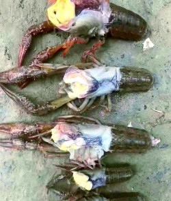 症状:虾难以顺利脱壳,病虾往往在脱壳过程中死亡,幼体、成虾均可发生,对幼虾危害较严重