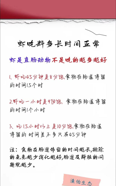 对虾喂料的“多久吃完好”主要取决于以下几个因素: