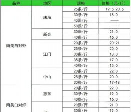 | 地区 | 对虾类型 | 价格(元/斤) |
