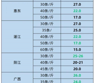 | 3040头/斤 | 6080 元 | 市场价较高,适合高端餐饮 |