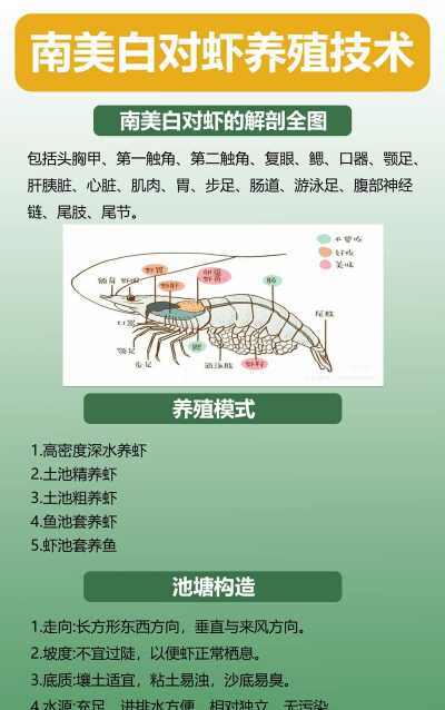 南美白对虾(*Litopenaeus vannamei*)是目前全球养殖最广泛、经济价值最高的水产养殖品种之一。其养殖规范主要包括以下几个方面: