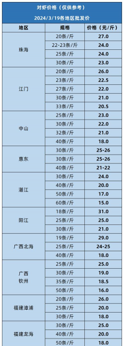 | 对虾品种 | 平均价格(元/斤) | 备注 |