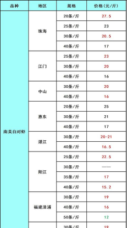 不同规格、等级的南美白对虾价格差异较大。例如:
