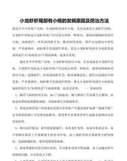 预防措施加强塘口管理:定期使用消毒剂如“小龙虾消毒王”对塘口进行消毒处理,改善水质,保持清洁。在虾苗进塘前,使用生石灰进行彻底消毒。