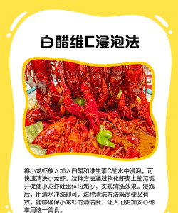 清洗和处理方法清洗小龙虾时,可以先用清水浸泡一个小时,然后用牙刷将全身脏污刷洗干净,特别是腹部的褶皱和头部。