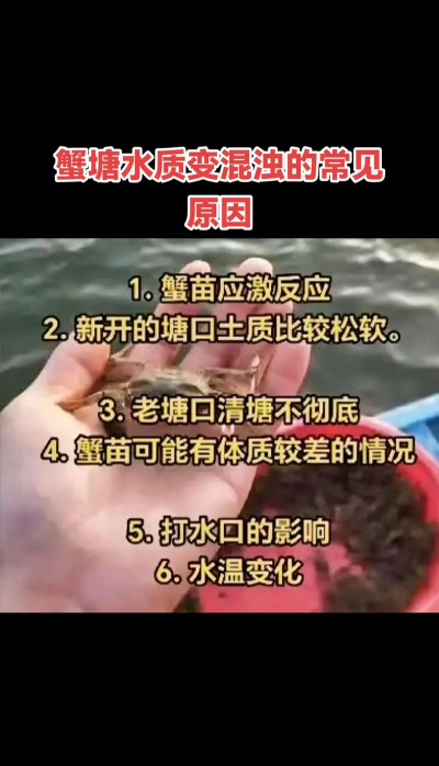 螃蟹塘水浑浊可能是由多种原因引起的,包括有机物质过多、饲料残留、藻类过度繁殖等。以下是一些建议的解决措施: