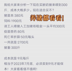 - 母猪饲料:成本或利润均较低,约10元/袋(单袋约25公斤)