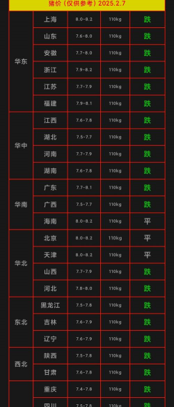 很抱歉,目前无法提供2025年4月20日当天的冷链配送生猪价格走势表。根据现有信息,...