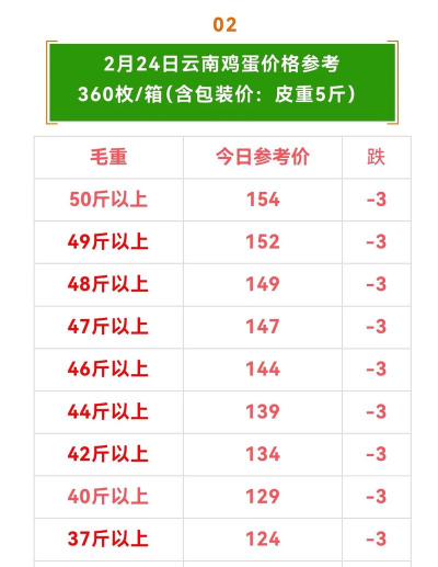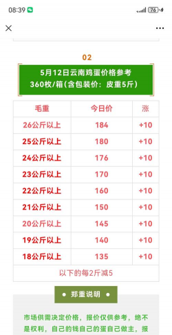 供需关系: 大理、昆明等地库存正常,但需关注存栏量(如四川厚全存栏400万只)对价格的影响 无药残、蛋黄色度达标的精品蛋价格比普通蛋高5-10元/斤 不同地区运输费用差异导致价差(如大理至昆明约3-5元/斤) 三、建议