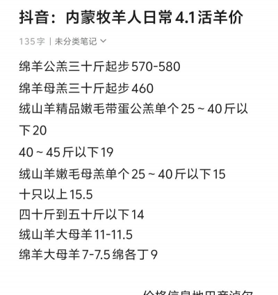 羊羔(3个月左右):约 10元/斤 ~ 15元/斤