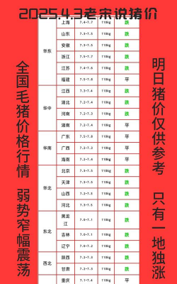建议实时查询:通过猪易报价等平台获取最新行情。- 风险提示:以上数据仅供参考,实际交易需结合现场调研。若需更精准的近期价格,可补充具体日期或地区信息进一步分析。