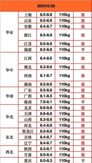 - 南方地区: 3月下旬价格下跌明显,如山东、河南等地屠宰企业结算价降幅达0.3元/公斤以上; - 北方地区