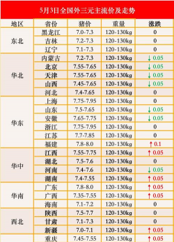 - 华东地区:上海8.0-8.4元/公斤,浙江8.0-8.4元/公斤,江苏7.8-8.15元/公斤,整体呈现下跌趋势。