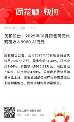 截至2025年2月,民和股份商品代鸡苗的报价为 3元左右/只