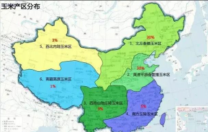- 南方丘陵玉米区:分布广东、海南、福建等地,种植面积较少,占全国3%左右。