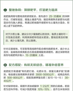 - 深耕后分层施入有机肥和化肥,促进根系吸收。