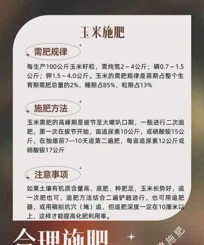 通过合理配比和分期施用,可确保玉米在不同生育阶段获得充足养分,促进高产稳产。