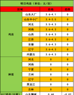 - 菏泽地区青脚麻公苗3.2-4.1元/羽,泰安地区鸡苗3.95-4.35元/羽,而德州、聊城等地价格相对稳定。