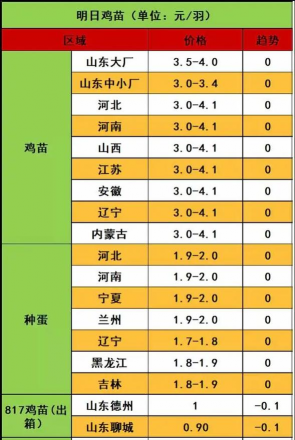 - 其他地区如河南、河北、山西等地价格集中在2.3-3.3元/羽。