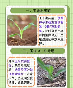 当玉米出苗后进入3-5叶期,杂草也长至1-3叶时,需使用苗后除草剂(如烟嘧磺隆、砜嘧磺隆)进行防治。