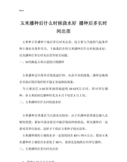 玉米种植的浇水频率需根据生长阶段、土壤湿度和气候条件综合调整,具体可分为以下几个阶段: