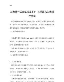 一、播种期(种子萌发阶段)最低温度:需满足6-10℃